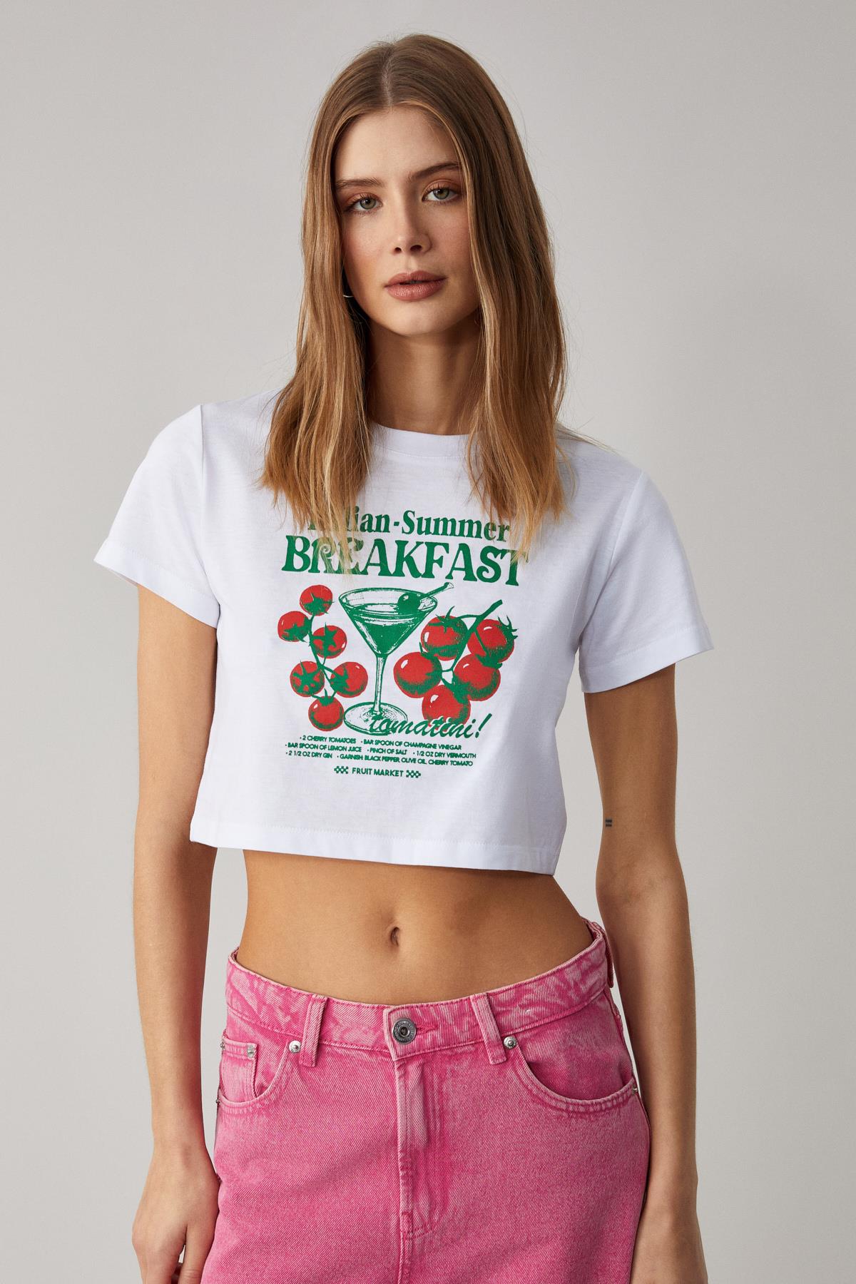 BELVETH Kadın Bisiklet Yaka Oversize Beyaz T-Shirt