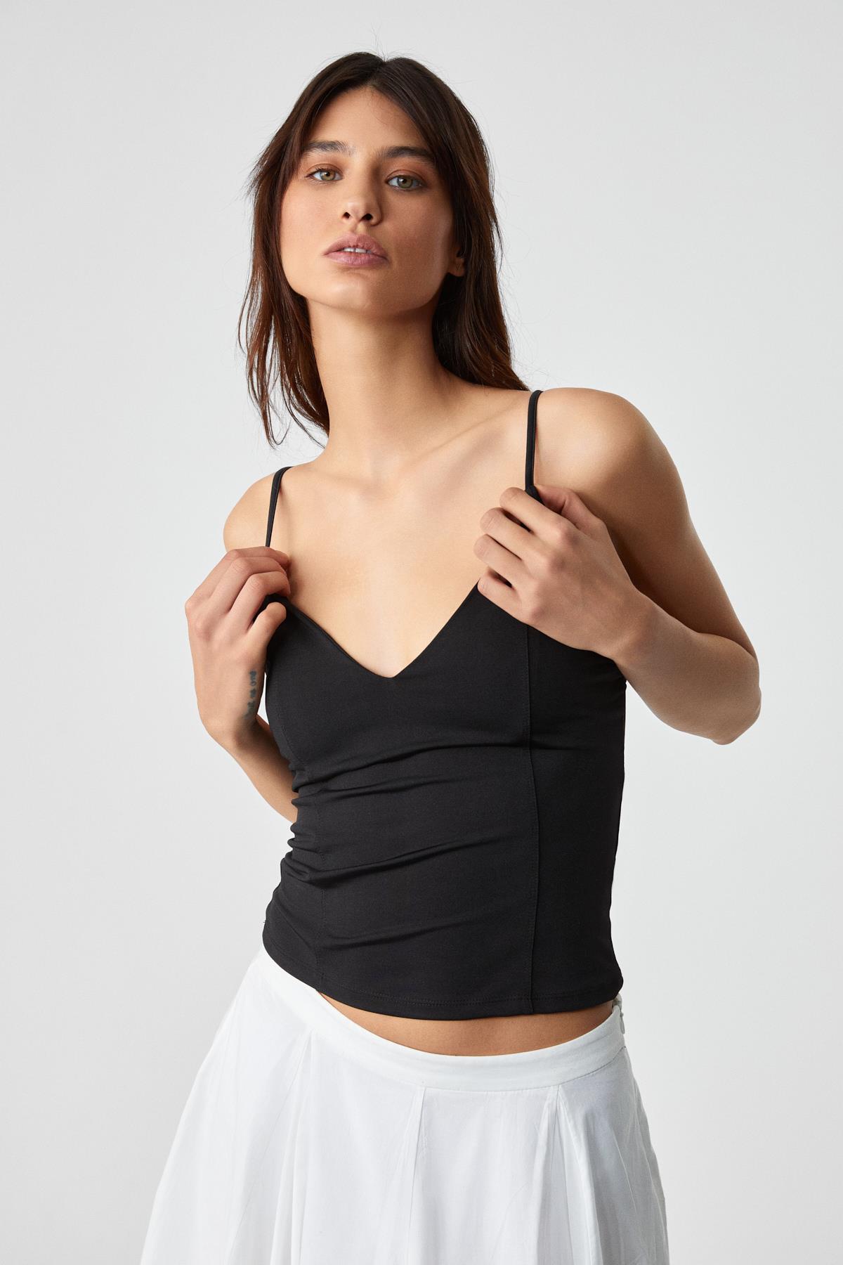 GUBBIO Kadın Asimetrik Yaka Regular Kolsuz Siyah Büstiyer