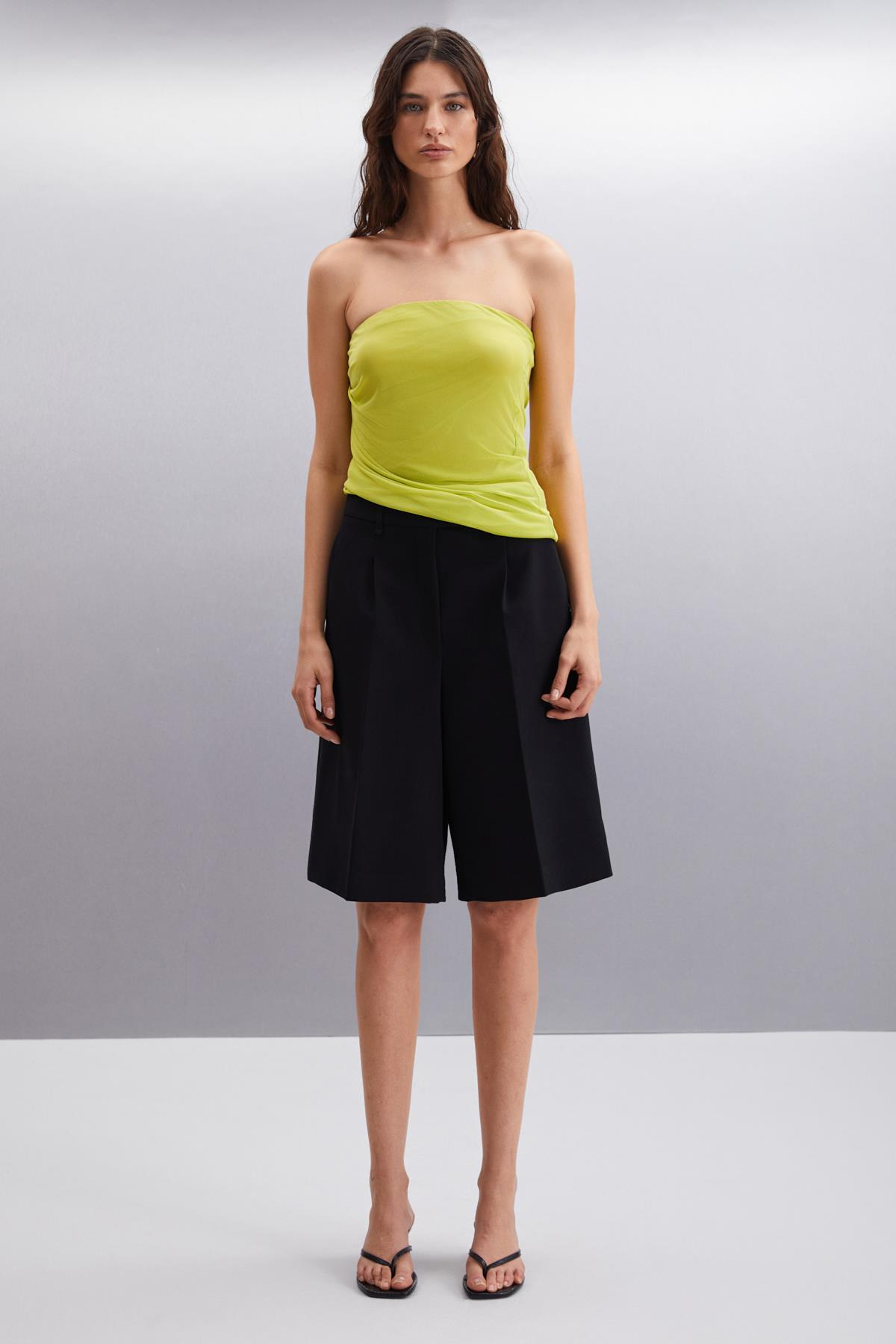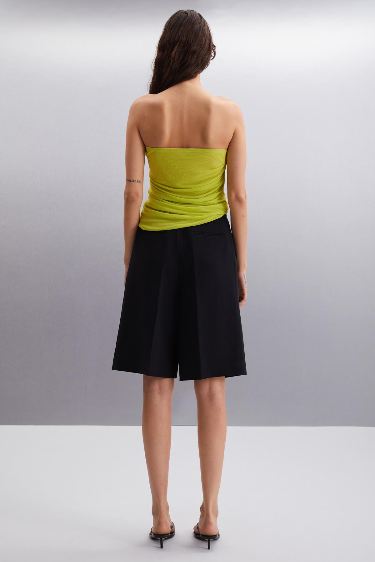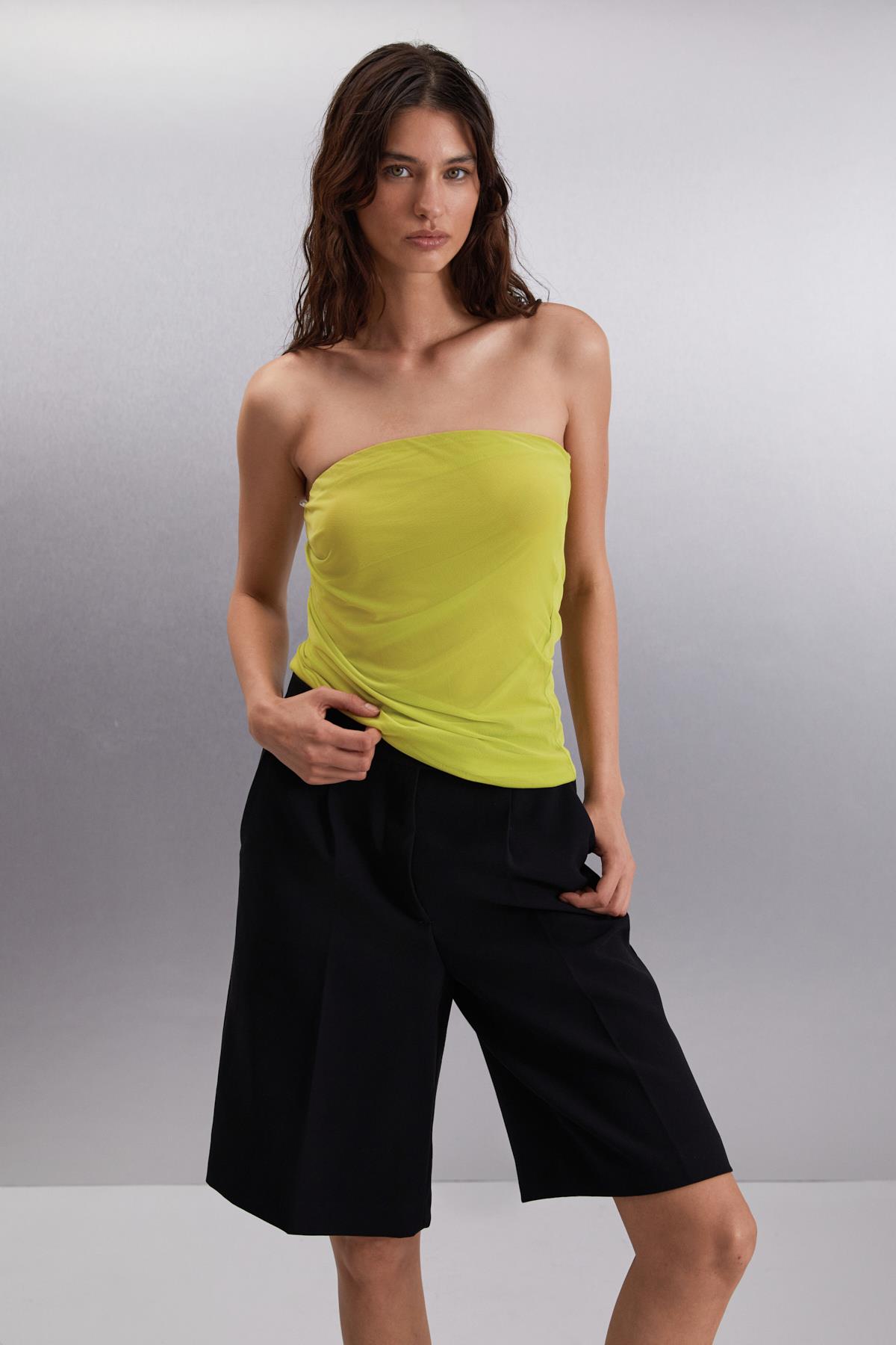 JOVANKA Kadın Çift Kat Tül Mesh Straplez Lime Bluz