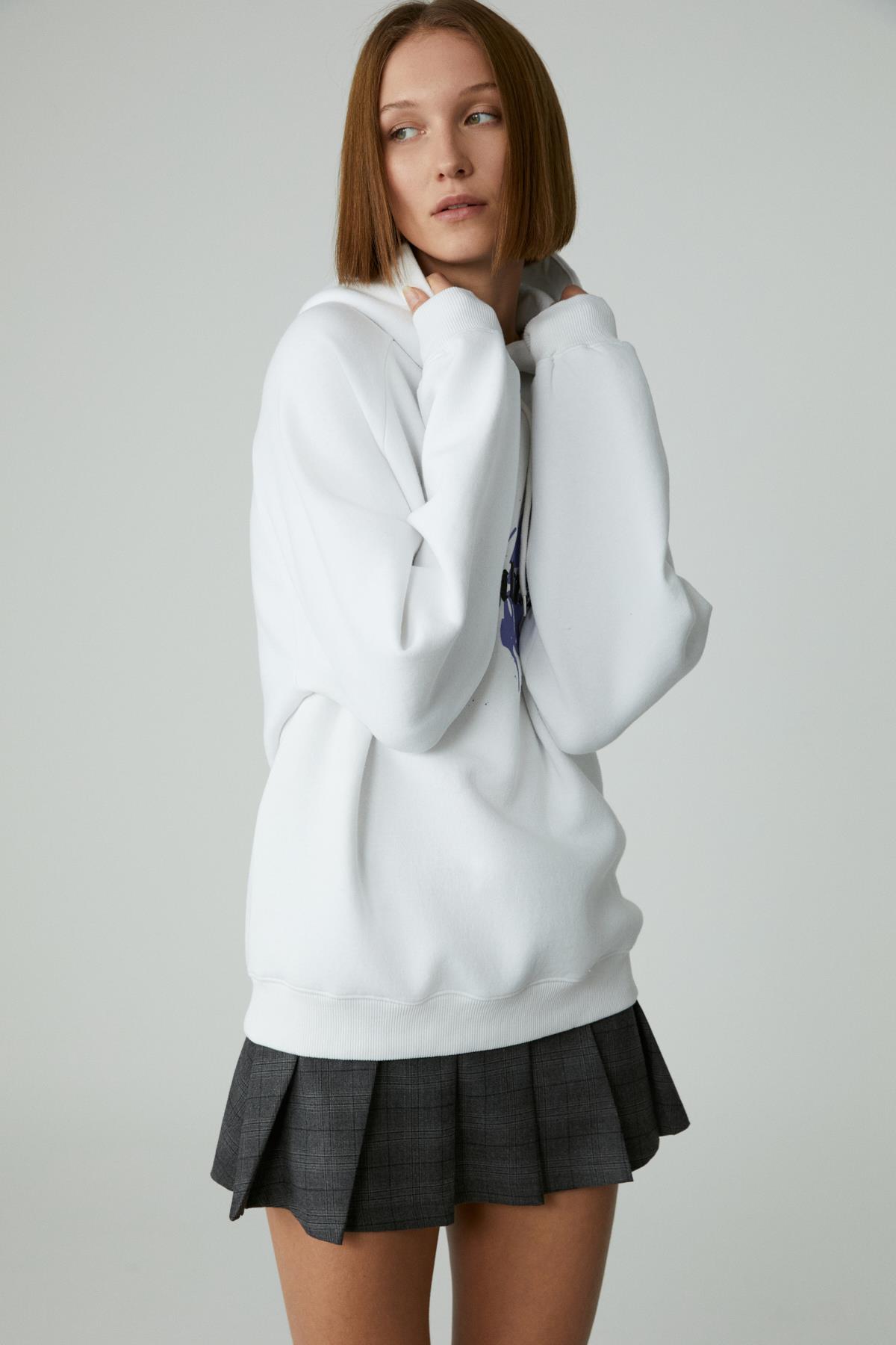 LAMARI Kadın Oversıze Şardonlu Kapüşonlu Beyaz Sweatshirt