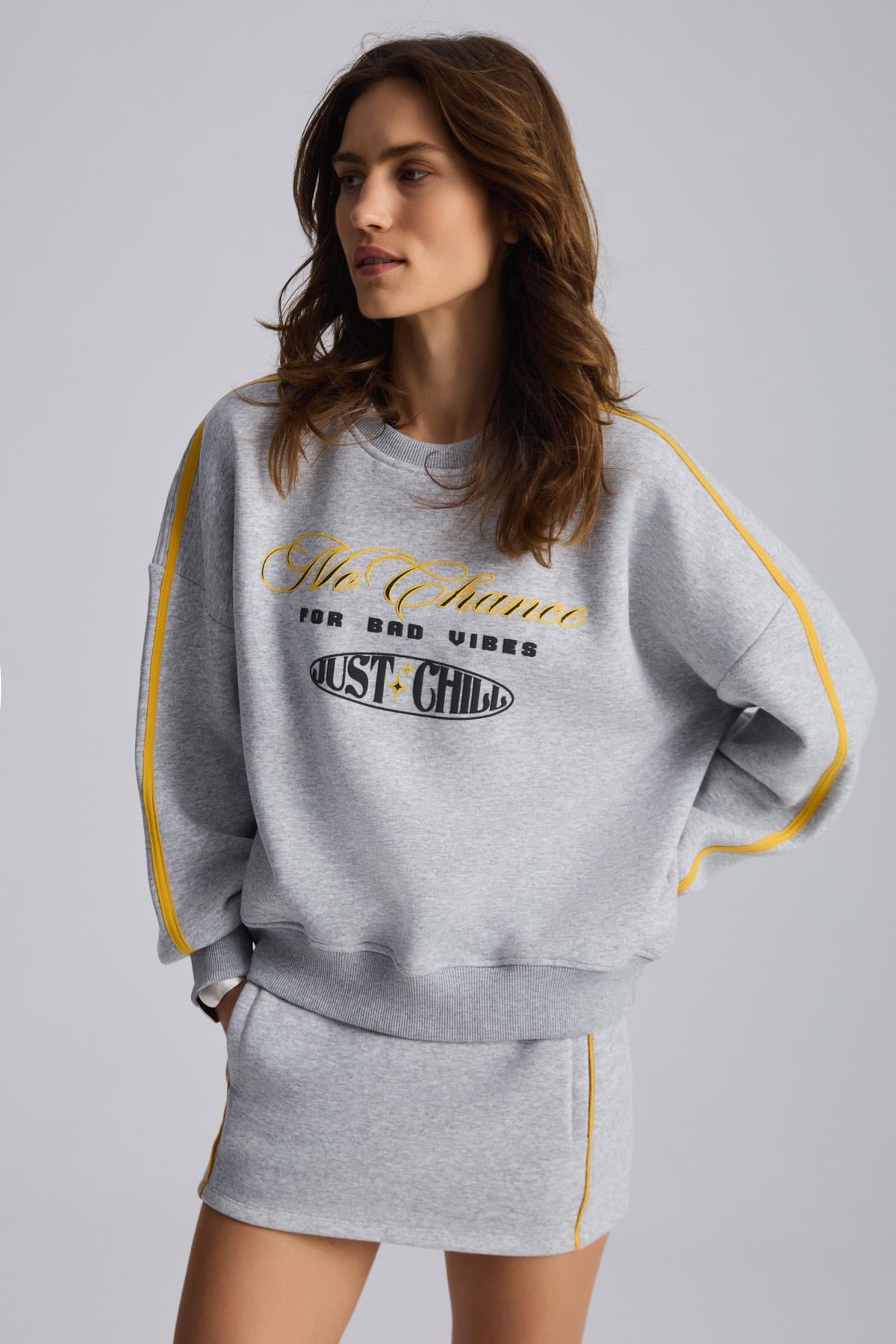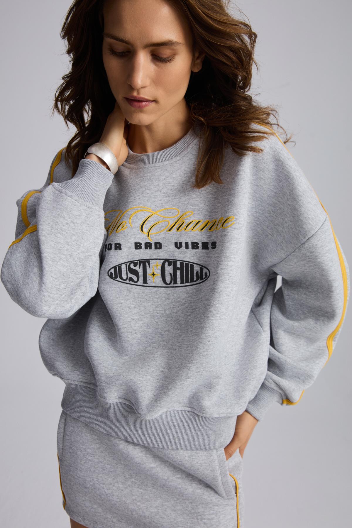 MIREILLE Kadın Kolları Kontrast Biyeli Ön Arka Baskılı Polarlı Organik Kumaş Grimelanj Sweatshirt