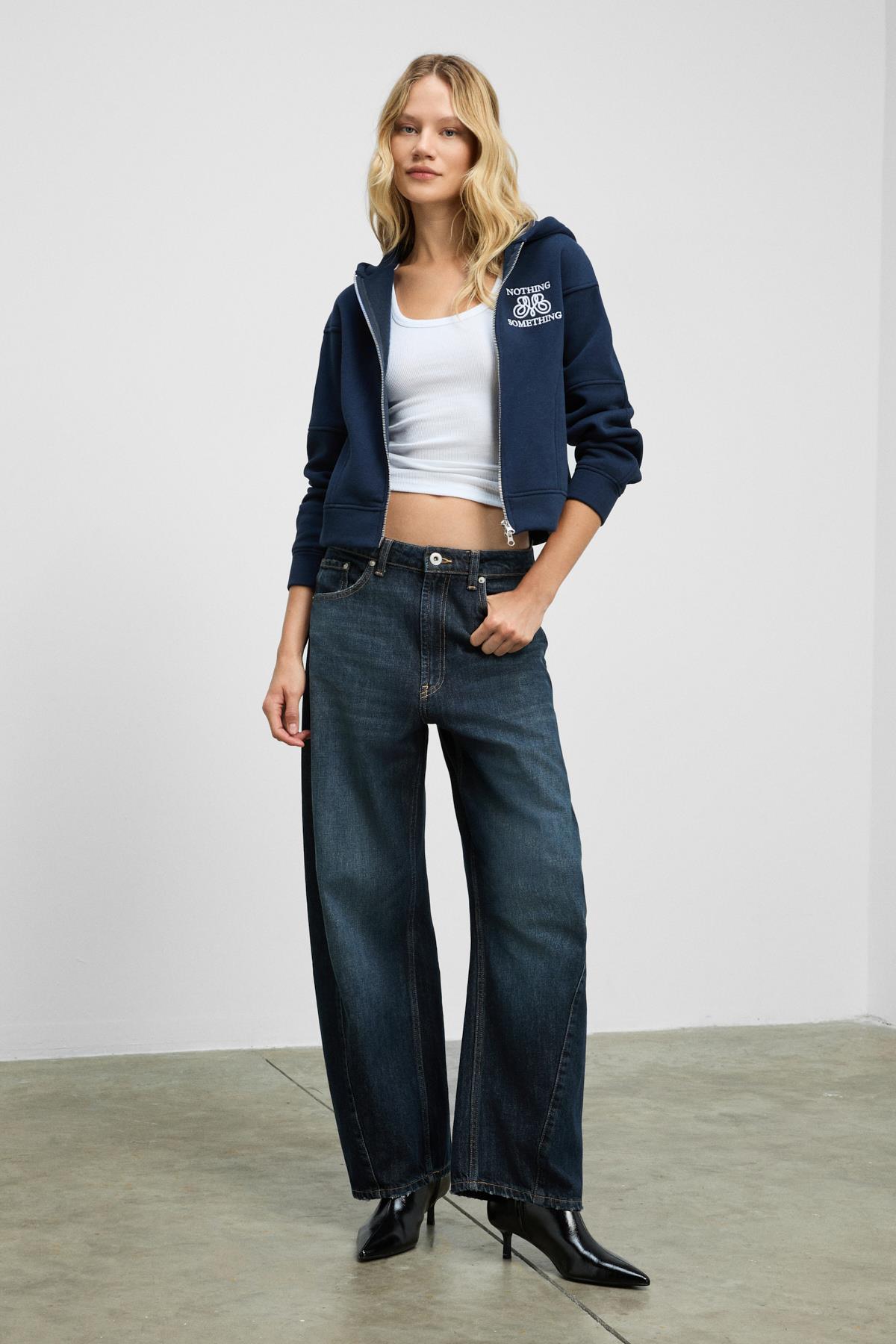 ROBINA Kadın Şardonlu Kapüşonlu Nakış Detaylı Lacivert Sweatshirt