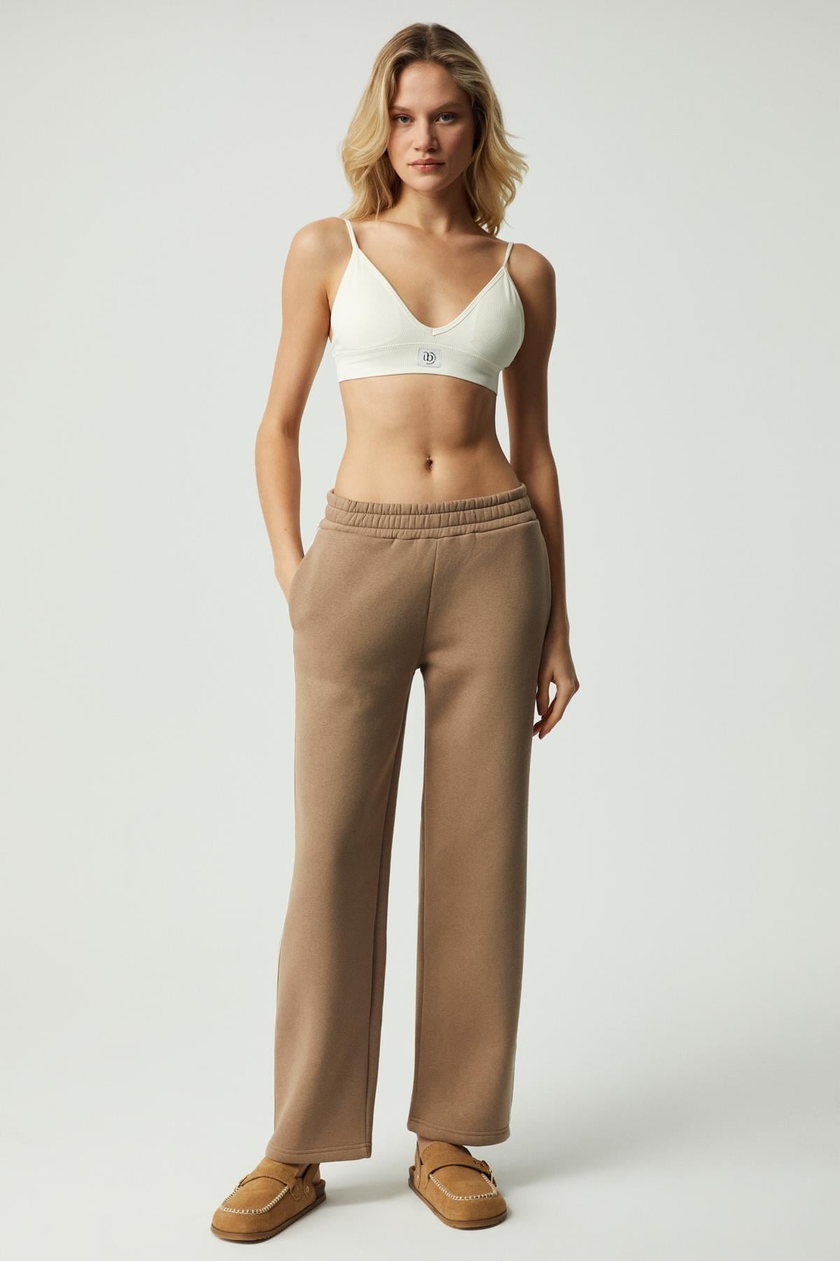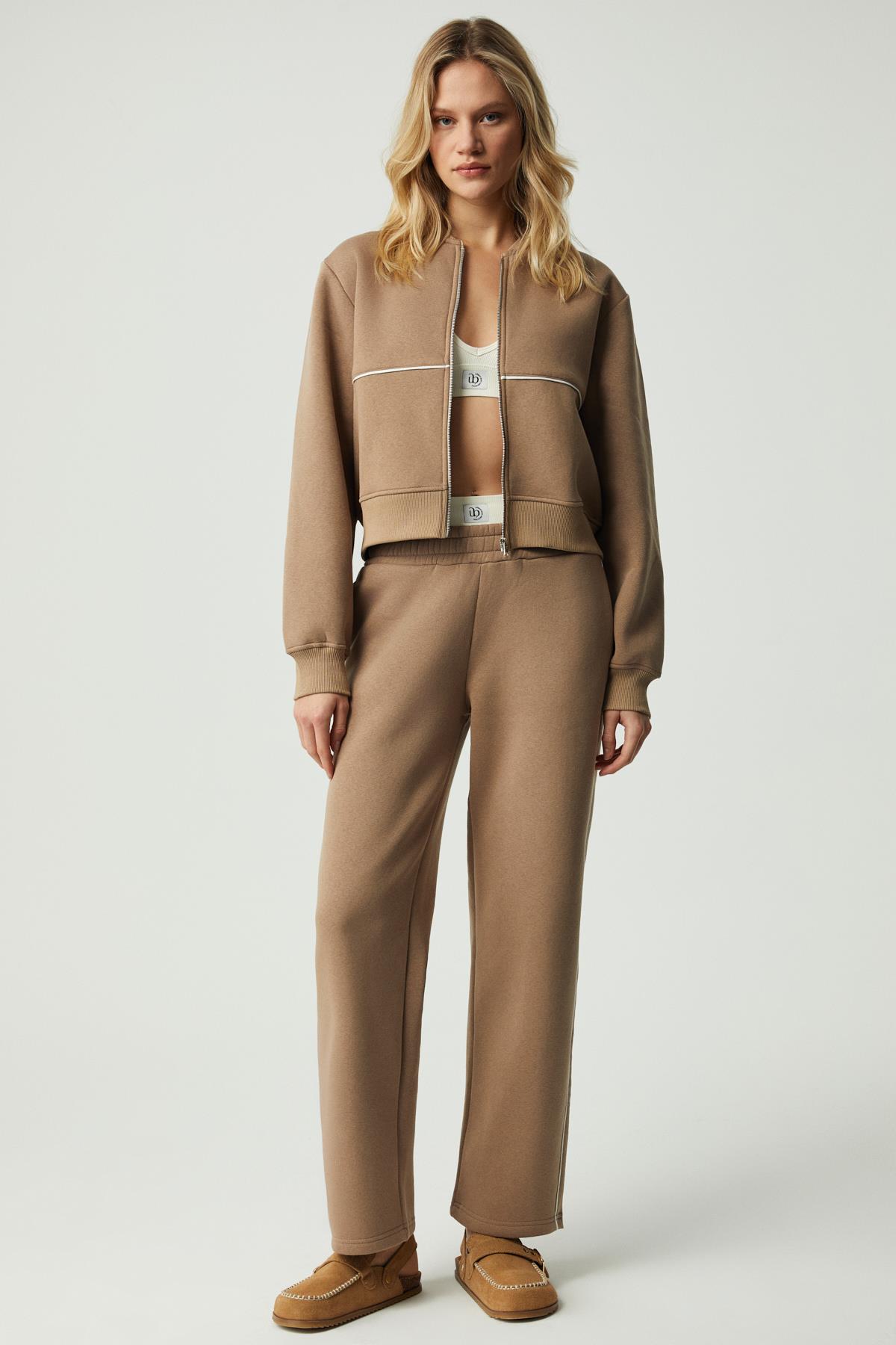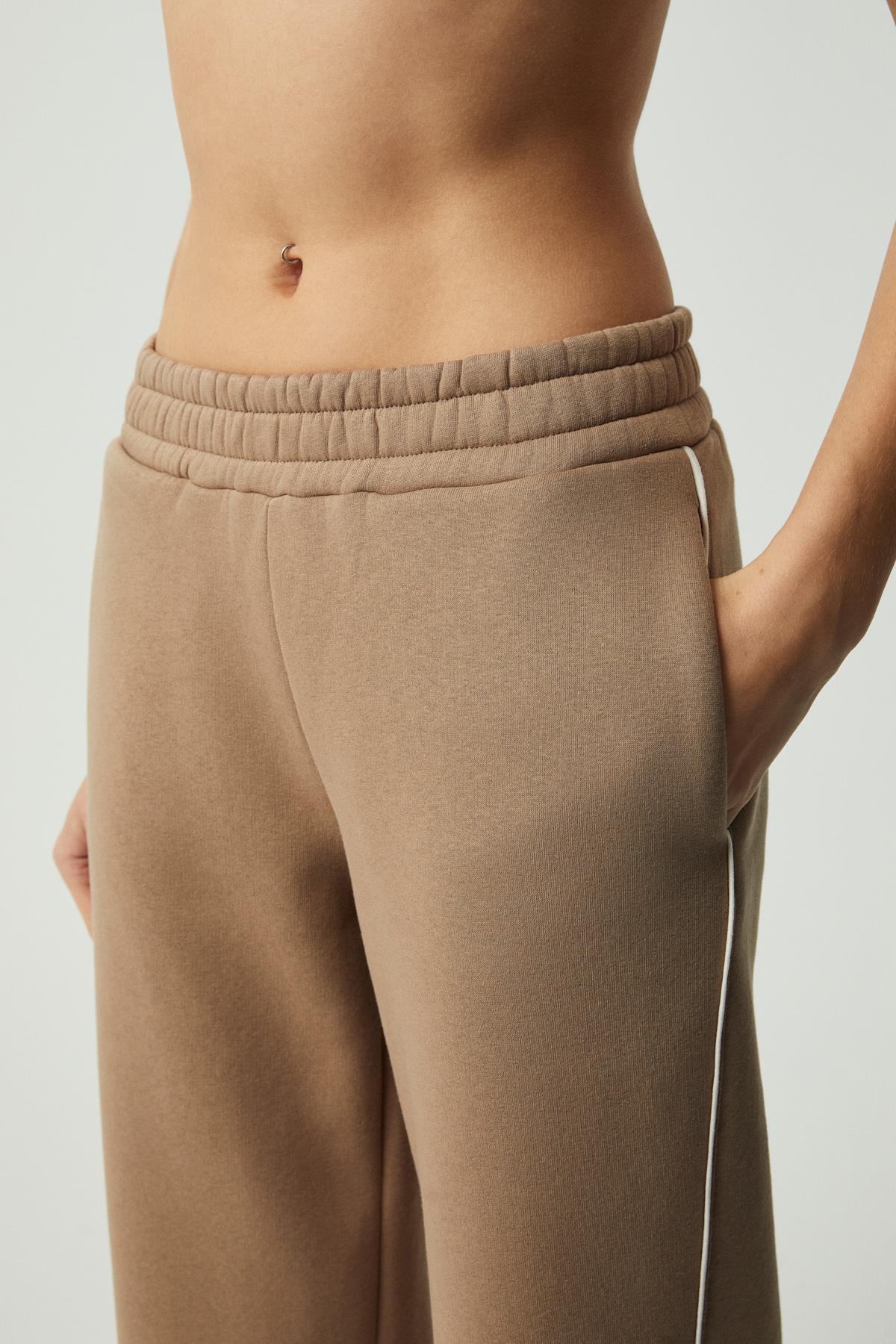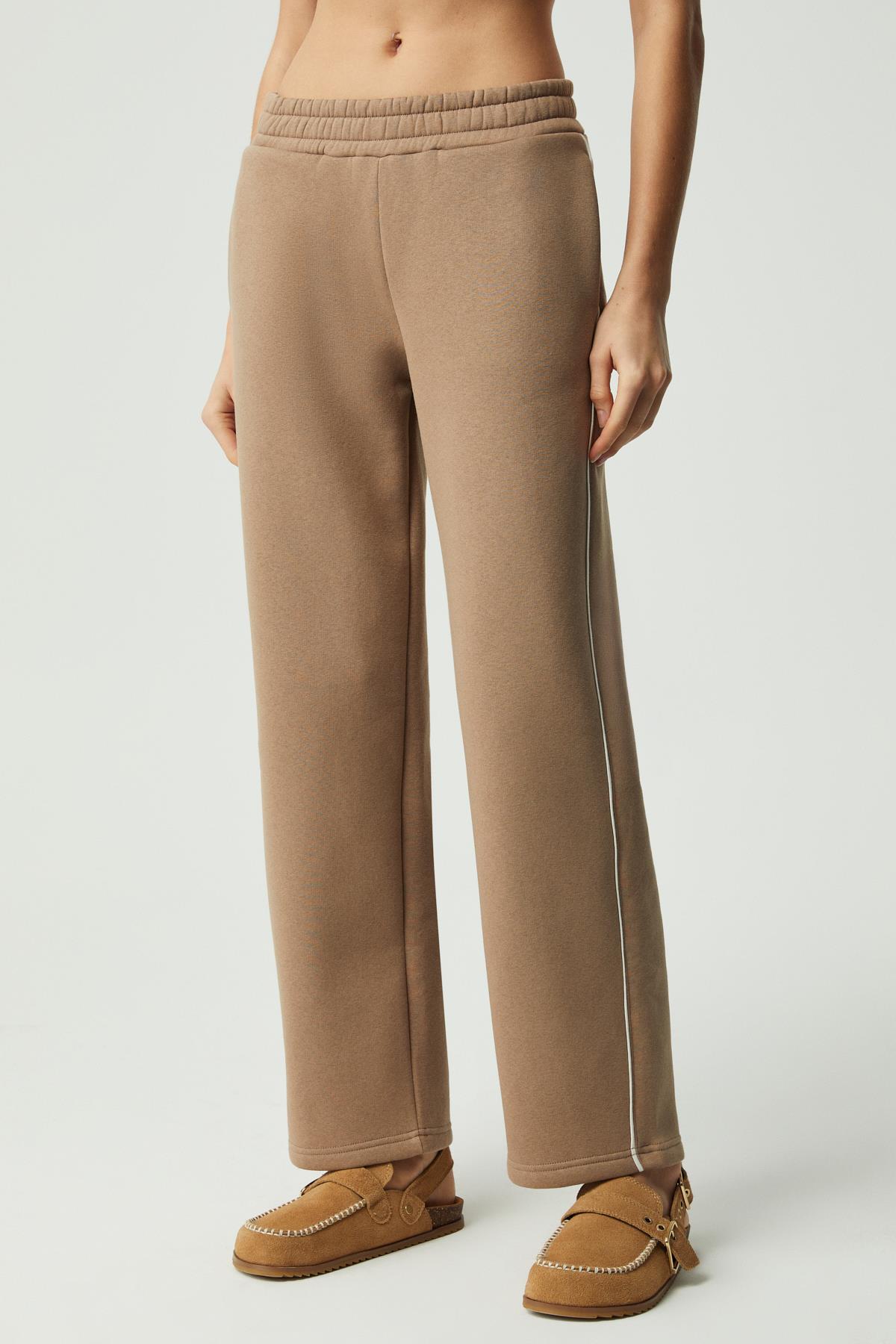 SHARID Kadın Relaxed Biyeli Geniş Paça Vizon Pantolon